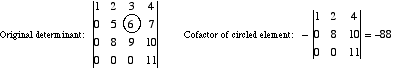 The determinant obtained by deleting the row and column of a given element of a matrix or determinant. The cofactor is preceded by a + or – sign depending whether the element is in a + or – position.