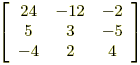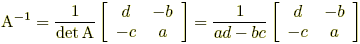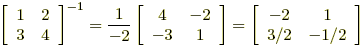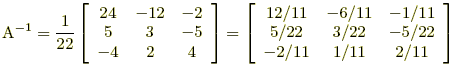 Example: The following steps result in A-1 for . The cofactor matrix for A is , so the adjoint is . Since det A = 22, we get .