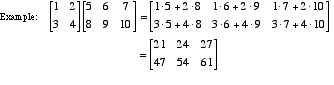Matrices are multiplied by the system shown below. Matrices may not be multiplied unless their dimensions are compatible. Note: When an a × b matrix is multiplied times a b × c matrix, the product has dimensions a × c.